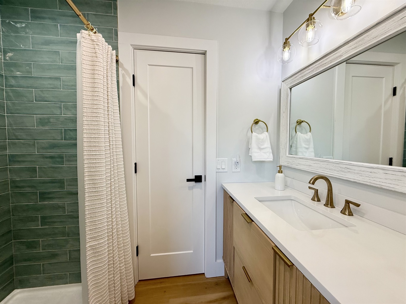 - Jack & Jill Bathroom: connects Bedroom #1 and Bunk Room. Large vanity with plenty of counter space and hairdryer. Tub/shower combo with tile surround. Toilet with soft close lid
